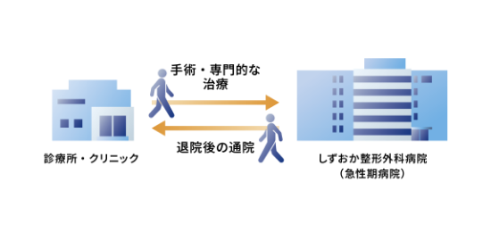 「しずおか整形外科」は、地域の診療所・クリニックの先生方とより緊密に連携し、