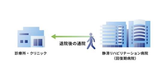 R&Oリハビリ病院グループ内の回復期病棟から退院される患者様のお近くの診療所・クリニックへご紹介しています。患者様の日常の生活を安心してお過ごしできるよう、連携してサポートしていきたいと考えています。